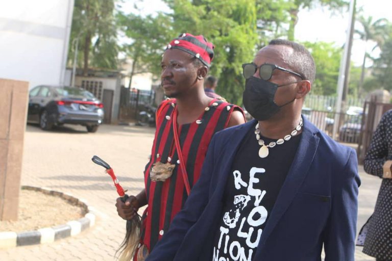 Omoyele Sowore appeared in court today with a native doctor for the trial over his involvement in #RevolutionNow Cross Over…