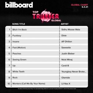 Rock”, a song released by Nigerian superstar Olamide Adedeji under YBNL Nation, is among Top 10 on Triller Global Chart Billboard.