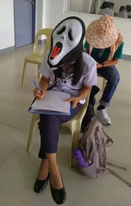 In the now-viral photos, the students could be seen donning different amusing headgear to avoid peeking at each others’ papers during the exam.